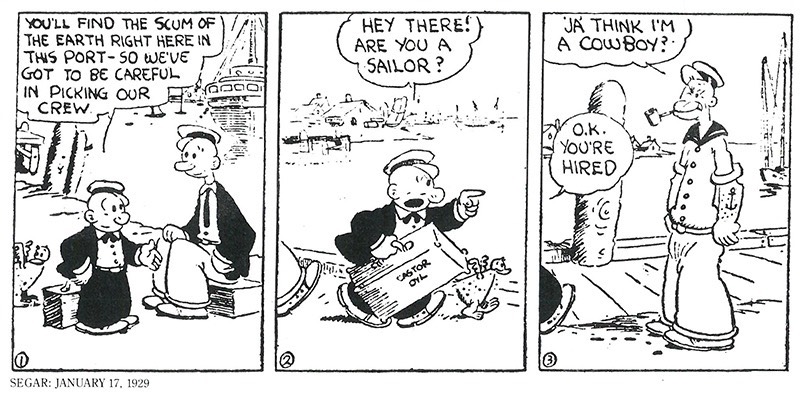 On September 12, Popeye first encounters “Bluto the Terrible.” Bluto was later adapted into animated form by Fleischer Studios in 1933.