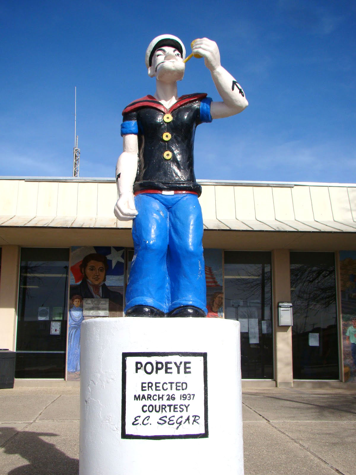 Spinach Capital of the World, Crystal City, Texas, erects a statue to honor E.C. Segar and Popeye for their influence on America's spinach eating habits, making Popeye one of the first cartoon characters ever immortalized in public sculpture.