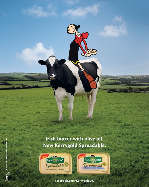 Olive Oyl appears in a UK advertisement for Kerrygold spreadable butter.