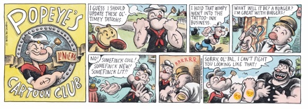 On January 17, Popeye kicks off his 90th birthday celebration with the relaunch of "Popeye's Cartoon Club" comic strip series on ComicsKingdom.com. First seen in the 1930s, the original "Popeye's Cartoon Club" ran at the end of E.C. Segar's "The Thimble Theater" comic strip and featured Popeye fan art.