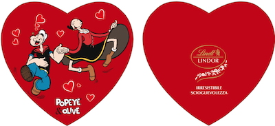 Lindt chocolatiers celebrated Valentine’s Day in Italy with Popeye and Olive Oyl designed boxes of chocolate.